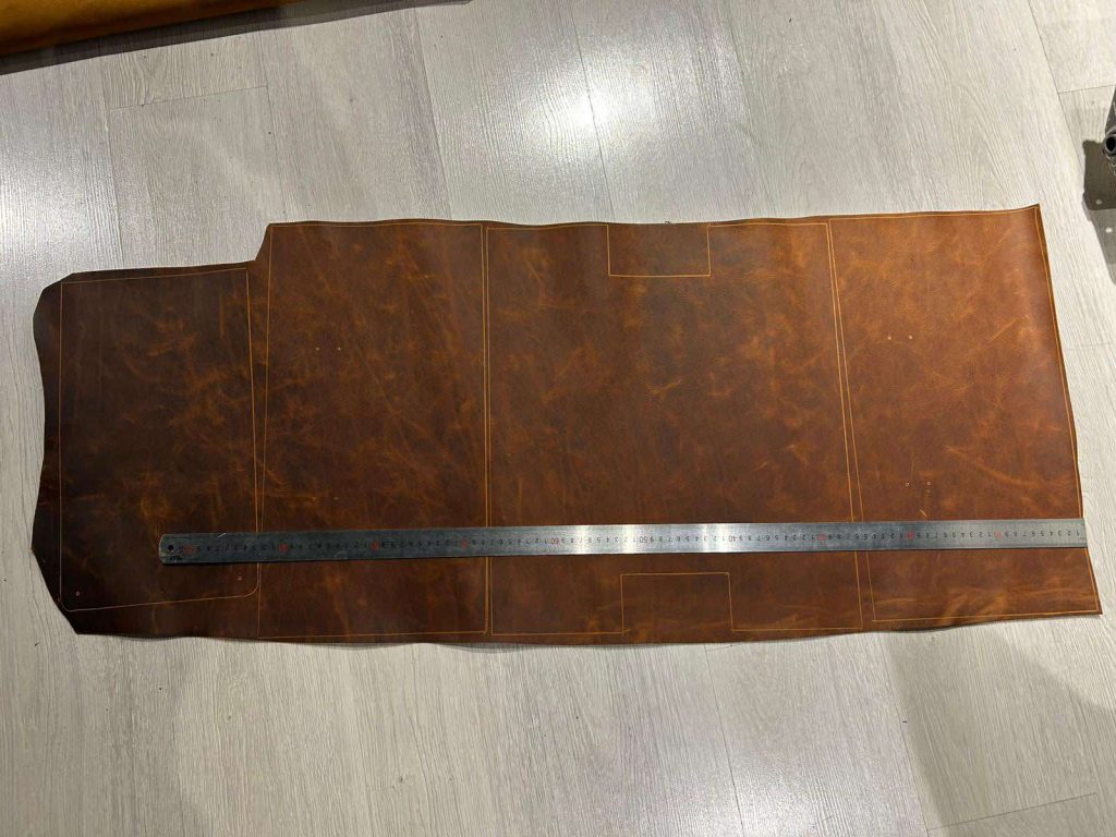 Откако ќе ги добиеме Buttero и Frisco кожите – некои од најквалитетните кожи за изработка на торби – внимателно ги прегледуваме и ги избегнуваме оштетените делови. Потоа ги поставуваме претходно подготвените шаблони и ја означуваме кожата каде што треба да се сече. Со остар нож, рачно ги сечеме означените делови, а кожните парчиња се подготвени за следниот чекор – шиењето.