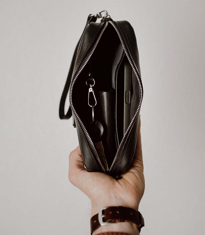 Дизајнирана да биде истовремено елегантна и практична. Оваа торбичка е совршен додаток во вашето секојдневие. Без разлика дали одите на свечен настан или ги извршувате своите секојдневни активности, ова безвременско парче додава допир на софистицираност во секој поглед. Овој clutch bag може да го користите како торбичка за полначи, AirPods, телефон, паричник, очила за сонце, парфеми и друго.